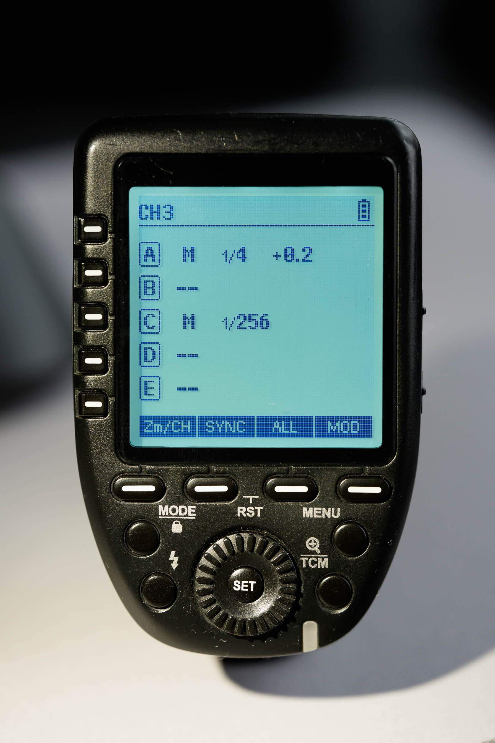 Das grosse, kontrastreiche Display zeigt alle Gruppen gleichzeitig an und bleibt auch bei hellem Umgebungslicht gut ablesbar. Die Menüstruktur ist flach, logisch aufgebaut und seit Jahren nahezu unverändert – ein Pluspunkt für alle, die bereits länger im Godox-System arbeiten.