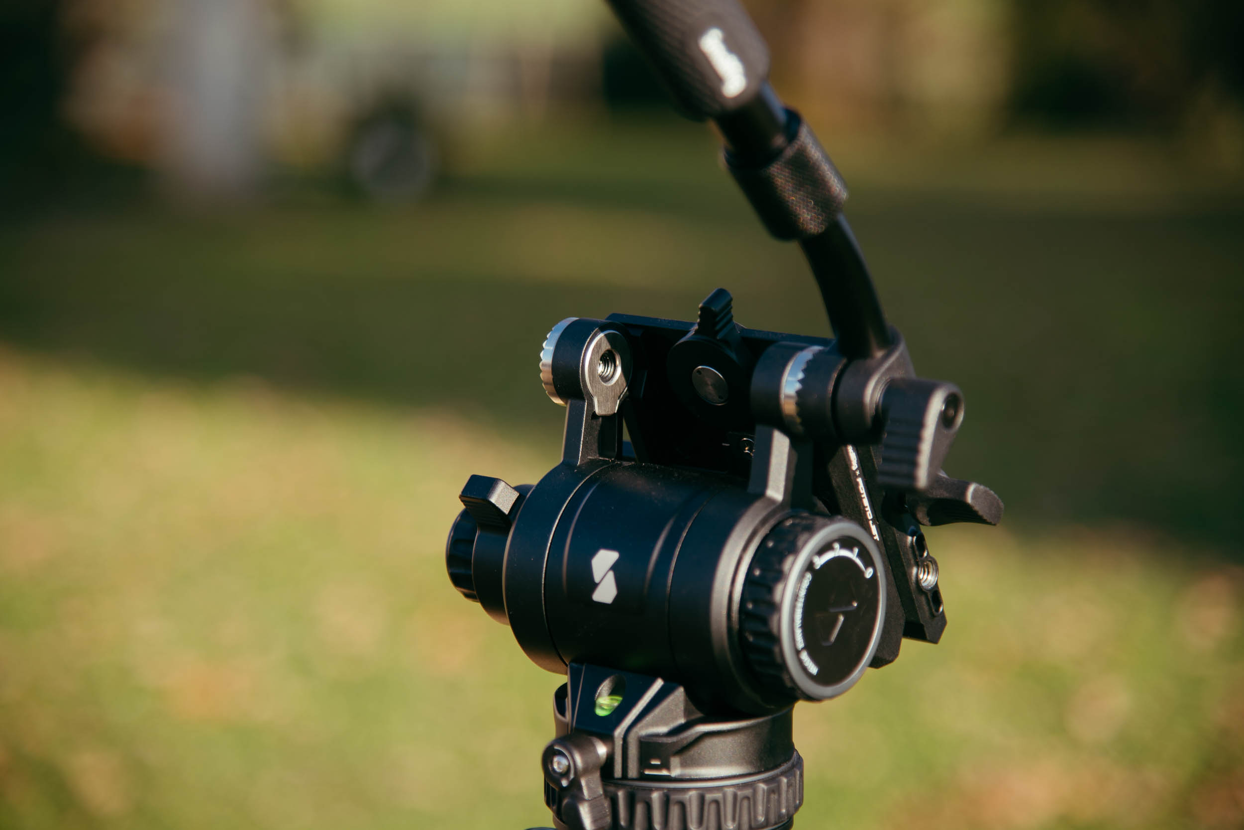 The tripod head looks high-quality and is a fluid motion head with professional drag control. The 4-level balance stages (dynamic counterweight function) make balancing the camera easier and ensure stable, fluid movements with camera setups up to 6 kg. However, the head is not intended for heavy cine rigs – the largest setup should be an FX6 or similar.